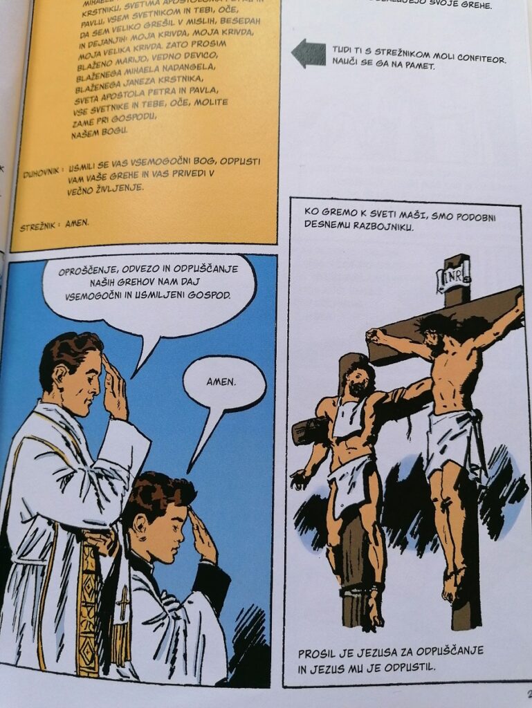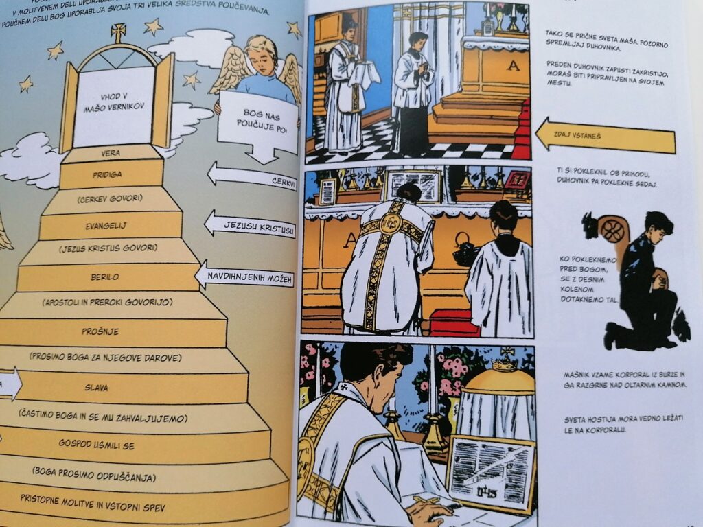 Strip je podrobna, v celoti ilustrirana razlaga svete maše, ki bralca korak za korakom vodi skozi obred ter podaja razlago tako v liturgičnem kot duhovnem smislu. Kratka in preprosta razlaga je primerna tako za otroke kakor za odrasle, ki bi se radi bolje seznanili s tradicionalno latinsko sveto mašo ter samim bistvom svete maše.