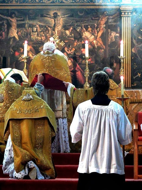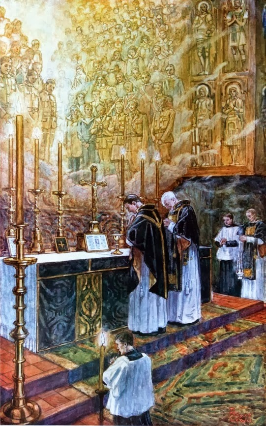 K temu, kar je Kristus sam ustanovil, je dodala še Cerkev: molitve in obrede, ki vzbujajo v vernikih notranjo pobožnost in živo zavest, da je daritev sv. maše »najsvetejša daritev« in da je treba »sveto ravnati s Svetim«. (Conc. Trid., sess. 22, de sacrif. missae cc. 4).